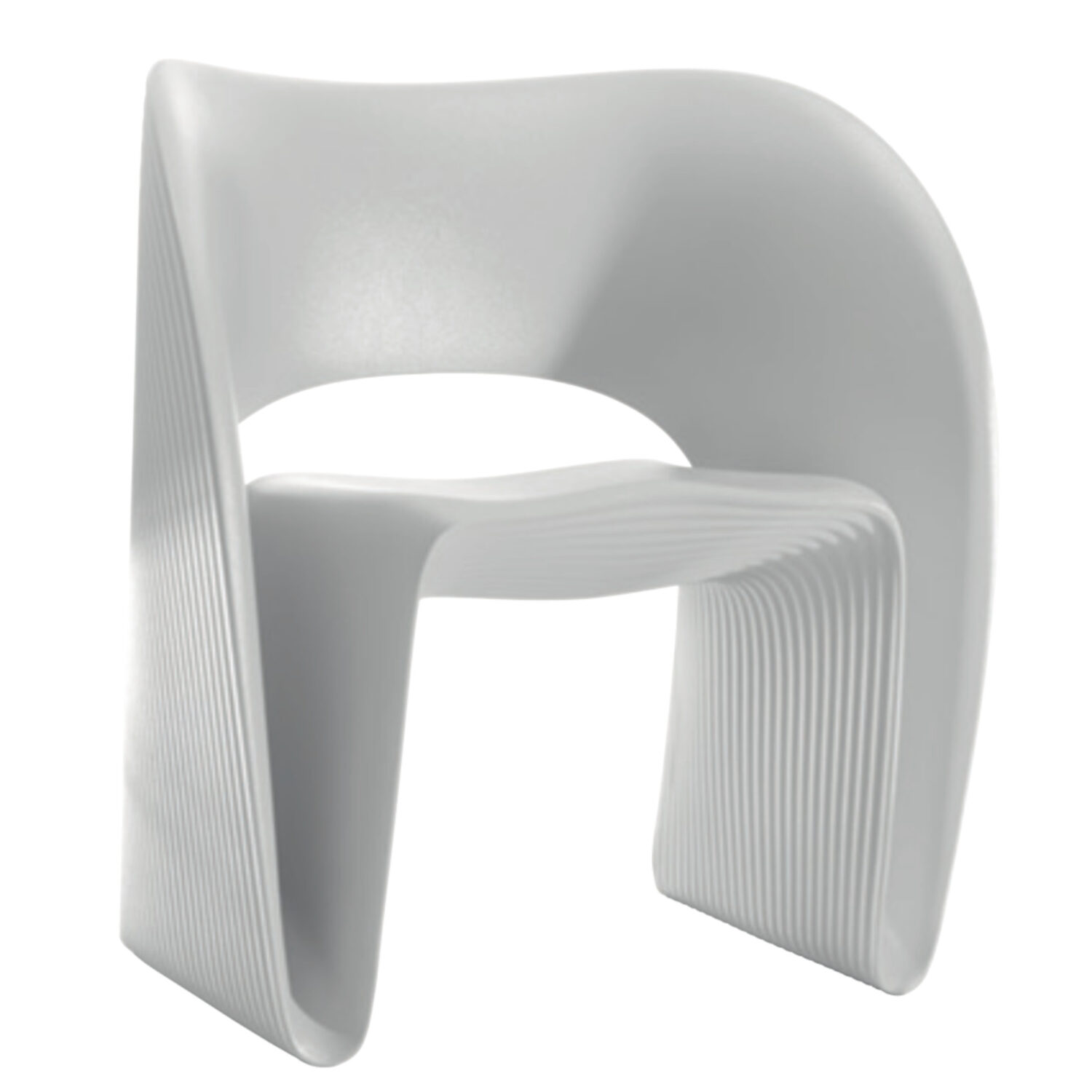 La poltrona Raviolo di Magis disegnata da Ron Arad è interamente realizzata in polietilene mediante stampaggio rotazionale (rotational moulding). La poltrona è costituita da un unico “nastro” di polietilene con una texture liscia all’interno e lavorata all’esterno. Questa particolare lavorazione esalta la percezione di continuità del “nastro”, che appare gonfiato come la pasta ripiena.