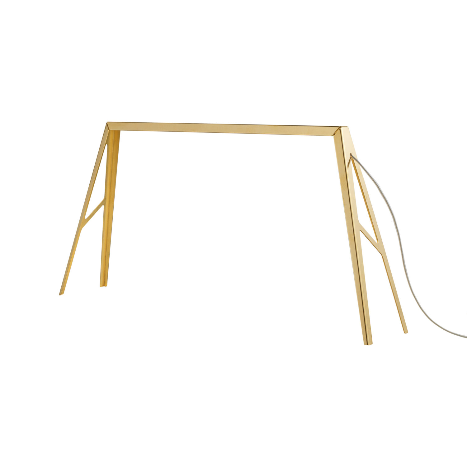 Bridge 1 FoscariniUna rappresentazione scultorea della semplicità, guidata dal design… Progettata dal designer italiano Francesco Meda, la lampada Bridge fa parte della collezione del Triennale Design Museum. Vero segno grafico, Bridge è simbolo di continuità. Il concept si basa su un gesto naturale, istintivo, quasi evocativo di un gioco ancestrale: una mano che piega un foglio di carta e lo trasforma in un oggetto tridimensionale. Bridge è realizzata interamente da un’unica lastra di ottone o acciaio da 1,2 mm, tagliata al laser e poi piegata, senza giunzioni. La lampada guadagna in tridimensionalità e struttura grazie alle pieghe sui lati. Il corpo centrale forma un “ponte luminoso”, che poggia sui quattro punti laterali. La semplicità del concetto si riflette anche nell’interfaccia utente: la lampada si accende e si spegne con un gesto della mano, senza bisogno di un contatto fisico diretto. La lampada Bridge è dotata di un interruttore sensibile: un sensore ottico ad infrarossi posto al centro accende o spegne la lampada al passaggio di una mano vicino ad essa. Dotata di una striscia LED, la lampada Bridge proietta luce diretta sulla superficie su cui è appoggiata. Bridge si discosta dal concetto canonico di lampada diventando un elemento decorativo e scultoreo. Originariamente autoprodotta nel 2014 in una versione leggermente diversa da quella inclusa nel catalogo Foscarini, Bridge fa parte della collezione permanente del Museo del Design della Triennale di Milano, a dimostrazione del costante impegno di Foscarini nel rendere la ricerca sul design contemporaneo accessibile a un pubblico più ampio .